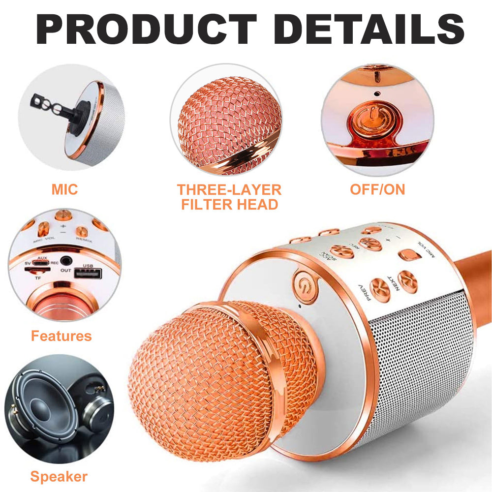 INTEGRIERTER LAUTSPRECHER: Dieses Mikrofon verfügt über hochwertige Lautsprecher. Wenn Sie nicht performen möchten, funktioniert es perfekt als Bluetooth-Lautsprecher. Die dualen Surround-Lautsprecher verbessern die Qualität der Hintergrundmusik und Umgebungsgeräusche.