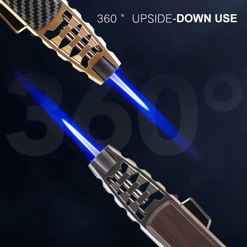 Dieses einstellbare Butan-Feuerzeug kann einfach entzündet und 360° auf und ab verwendet werden. Es ist sehr geeignet als Feuerzeug für Kerzen, um ein Feuer in der Wildnis zu entfachen, zum Grillen usw.