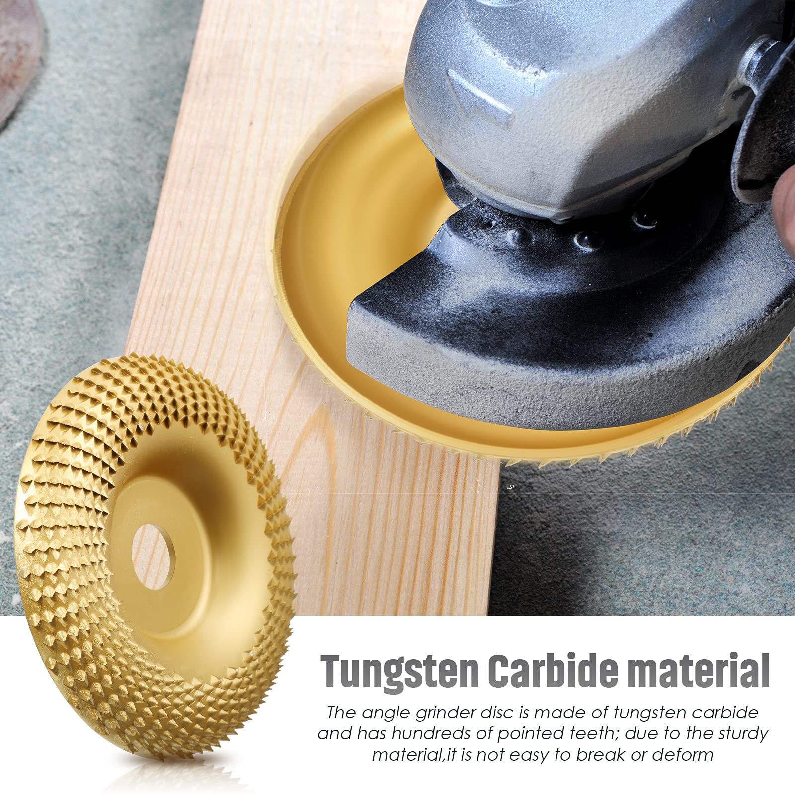 - Hochwertiges Material: Diese Winkelschleifscheibe wird aus Wolframcarbid hergestellt und bietet eine bemerkenswerte Langlebigkeit. Dank ihrer robusten Bauweise bricht oder verformt sie sich nicht leicht. Die Holzschleifscheibe ist mit hunderten von extrem scharfen Schneidkanten versehen, die schnell Material abtragen und die Lebensdauer von Hunderte Schleifpapier-Pads übertreffen.