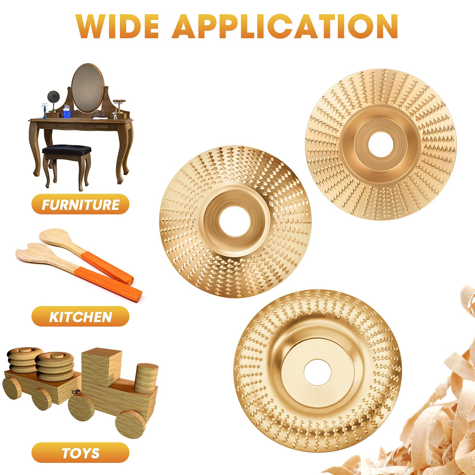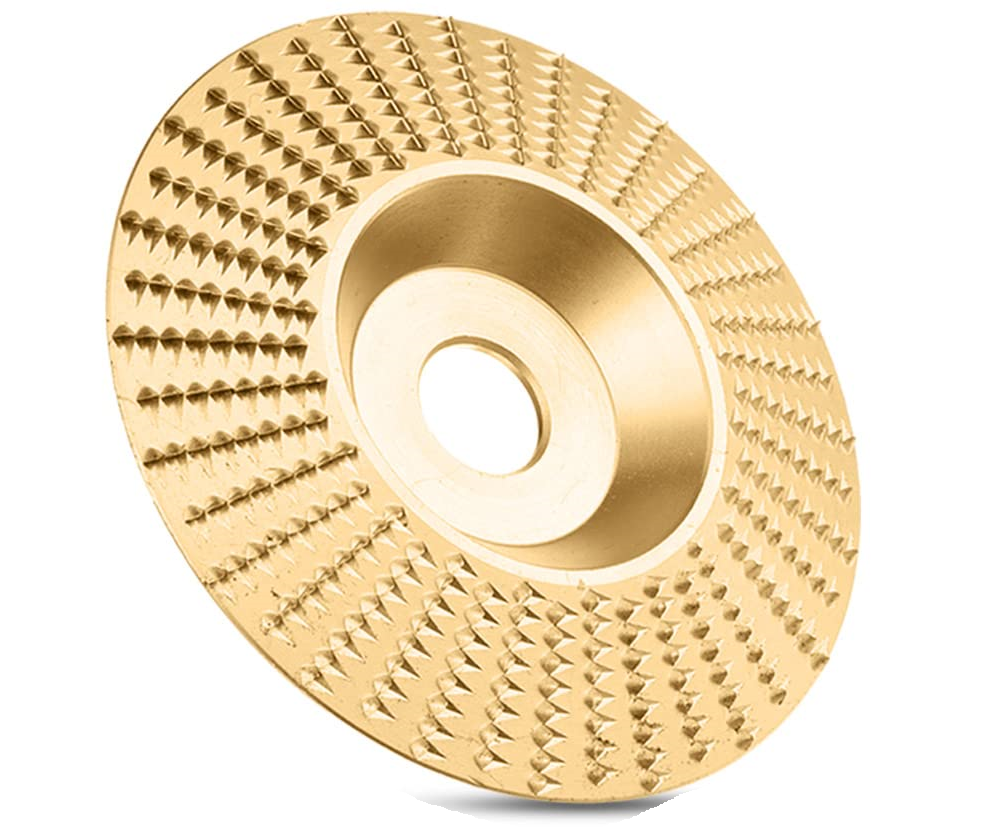 - Scheibendurchmesser: Der Außendurchmesser der flachen und gefrästen Schleifscheibe beträgt 100 mm/ 4 Zoll, während der Außendurchmesser der gebogenen Schleifscheibe für Holzschnitzerei 84 mm/ 3,3 Zoll beträgt, mit einem Innendurchmesser von etwa 16 mm/ 5/8 Zoll. Diese Schleifscheibe ist darauf ausgelegt, auf einem Standard-Winkelschleifer montiert zu werden, was sie ideal für das schnelle Entfernen und Formen, besonders in konvexen und konkaven Bereichen, macht.