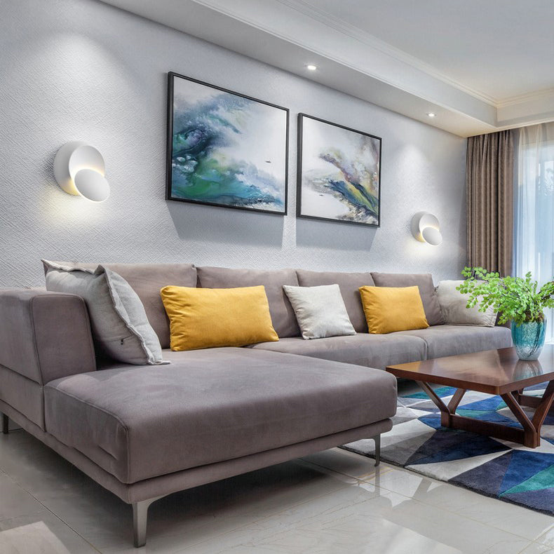 Avelena | Zeitgenössische nordische Eisenrunde Eclipse drehbare LED Wandleuchte für Nachttisch