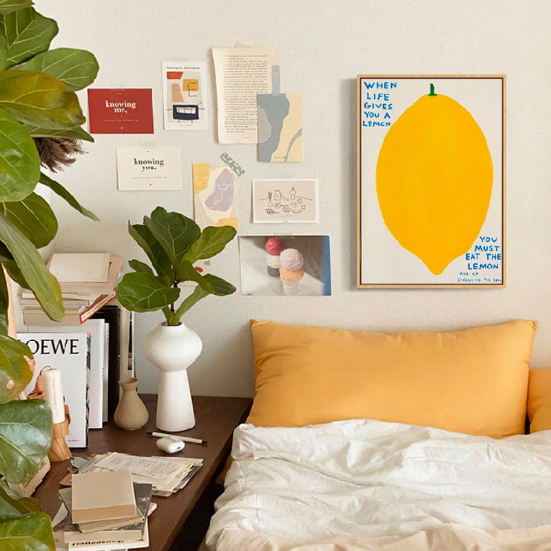 Avelena | Zitronen / Blaue Stuhl Leinwanddruck