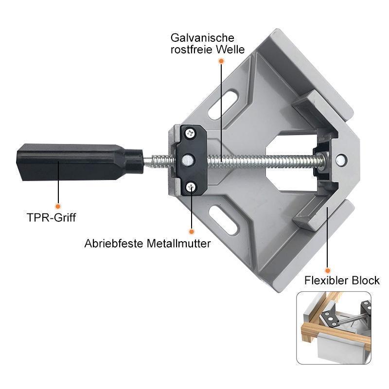 Diese Zwei-Achsen-Schweißklemme sorgt dafür, dass Winkel, runde, quadratische oder kanalförmige Materialien stabil gehalten werden, um eine präzise 90-Grad-Ecke zu garantieren. Der bewegliche Kopf und die verstellbare Spindelschraube ermöglichen eine flexible Anpassung zum Ausrichten und Sichern des Werkstücks.