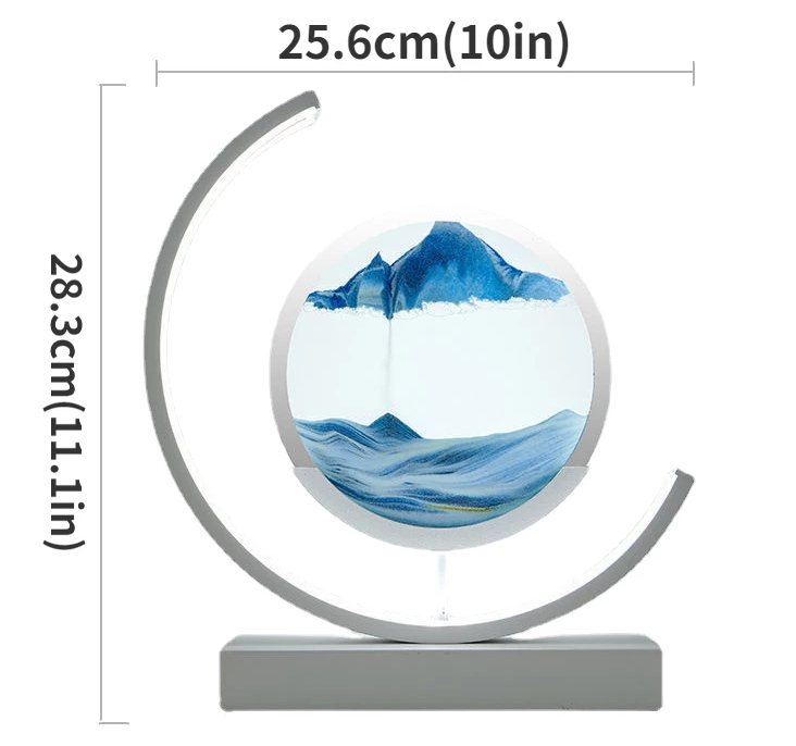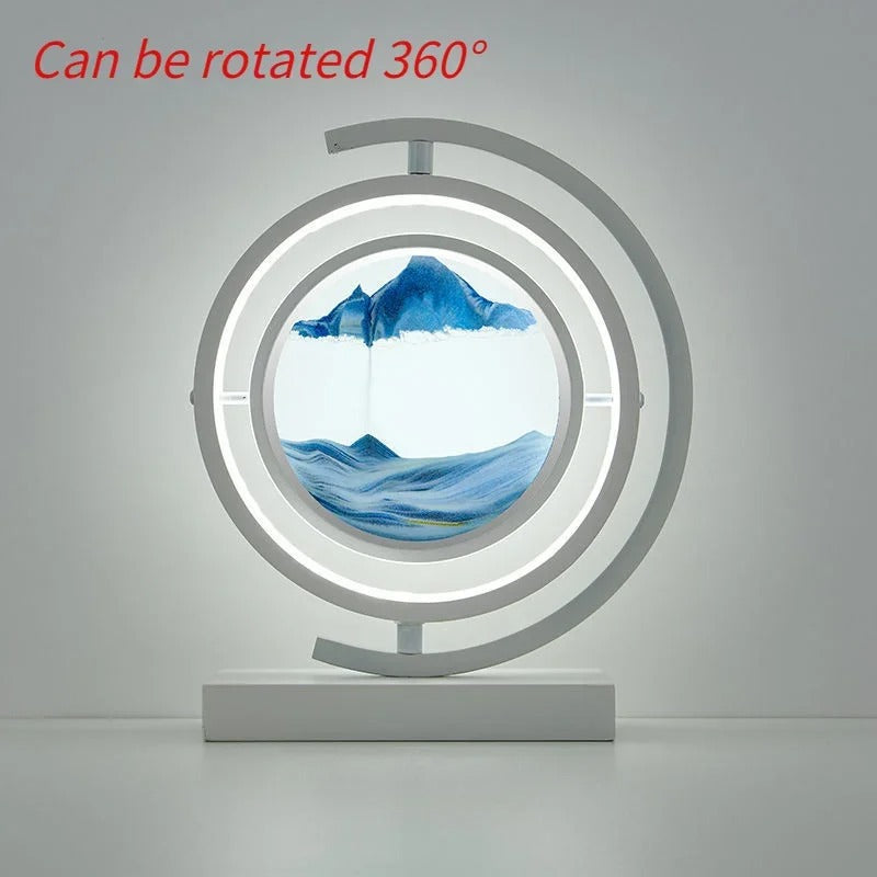 1. Fesselnde Kunstfertigkeit: Die Sandscape Lamp zeigt eine sich ständig verändernde, faszinierende Landschaft aus Sand, der sich anmutig bewegt und wirbelt. Mit ihrer beruhigenden, fließenden Bewegung schafft sie eine eindringliche visuelle Erfahrung, die sowohl entspannend als auch fesselnd ist.